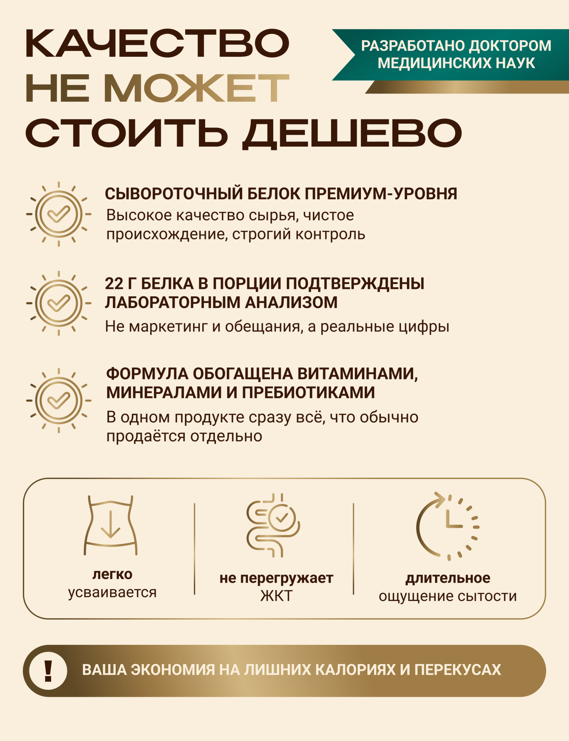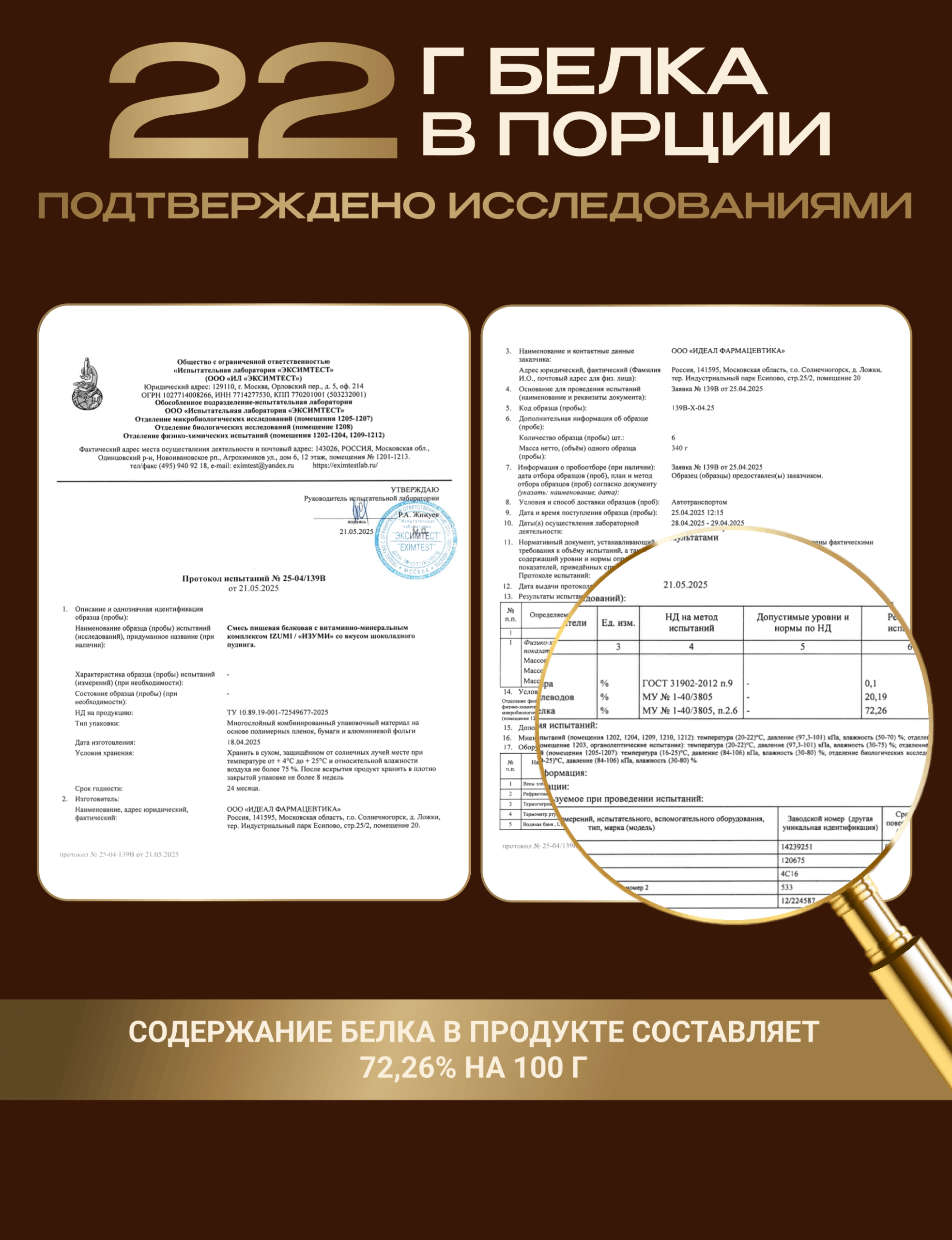 Концентрат сывороточного белка, какао-порошок, цитрат калия, инулин, загустители (гуммиарабик, ксантановая камедь), пшеничные волокна, ароматизатор пищевой, цитрат магния, пиколинат хрома, премикс витаминный (Витамин С, ниацин, Витамин Е, пантотеновая кислота, Витамин В6, Витамин В1, Витамин В2, фолиевая кислота, биотин, Витамин В12), подсластитель сукралоза, йодат калия, соль, селенит натрия.